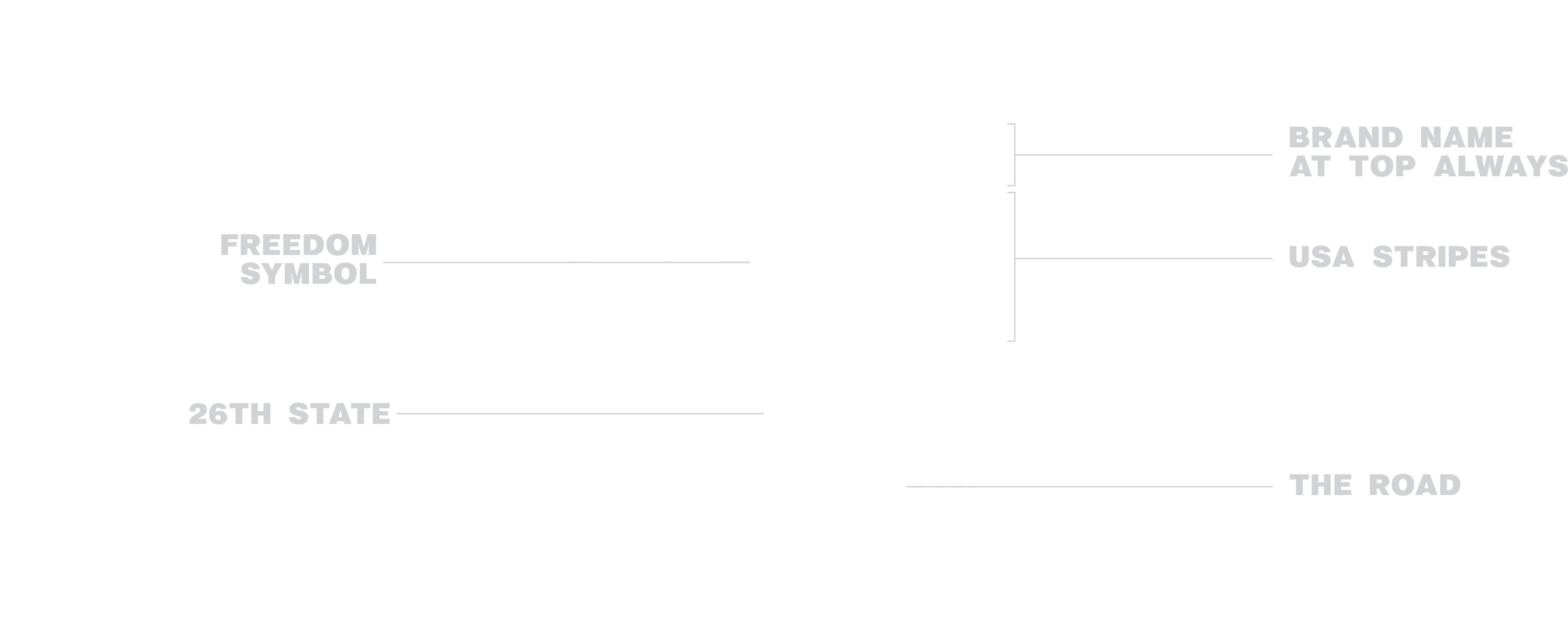 Red, white, and blue operate as a unified civic language rather than separate accents. Together, they reference American ideals without slipping into nostalgia or spectacle.